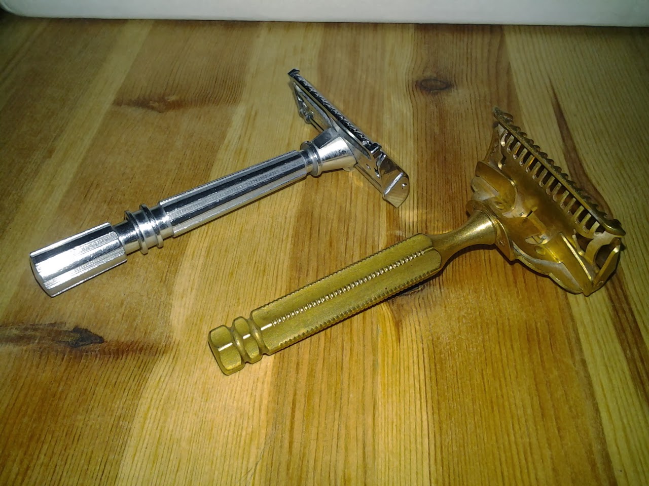 A package have arrived, but I’m not at home to properly enjoy right now… two good looking SE razors I’m really looking forward to giving a go – in my mailbox thanks to a generous PIF from a fellow shaver. The silver one is a GEM Micromatic Clog Pruf, the brass beauty is a GEM 1912.