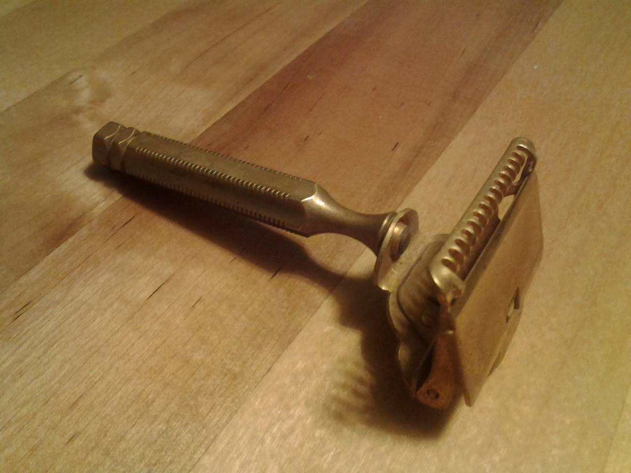 The surface of the 1912 is pure brass with no plating – this makes it slide across the skin less easily than a plated razor, but picking the right lather negates that minor issue.