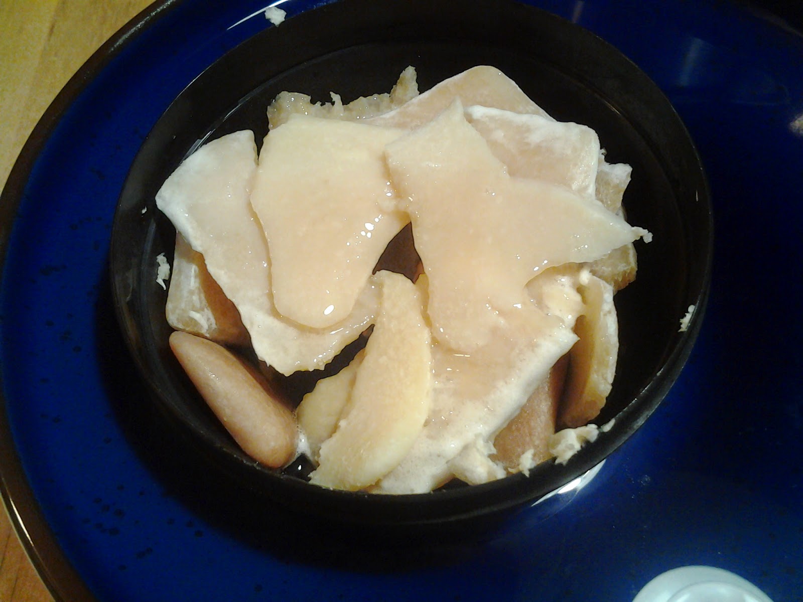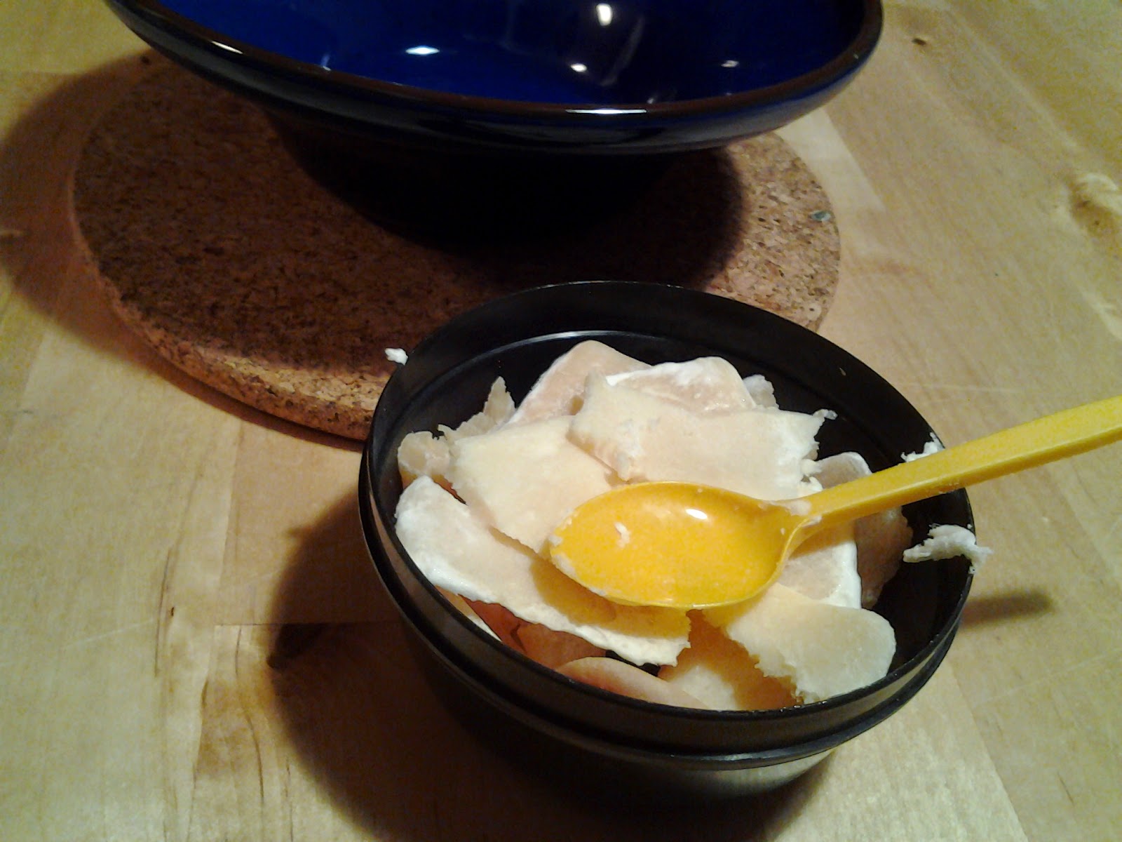 Place the container with the soap in a bowl of near boiling water, and add a little less than a teaspoon of boiling water to the mix.