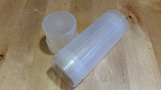 My GzD shavestick came with no wrapper, other than a card board box. For a while I had it wrapped in parchment paper, but that got messy when I started to wear it down… so for almost a year now it has languished in a Tupperware, half forgotten. Finishing off a deodorant however changed all that: