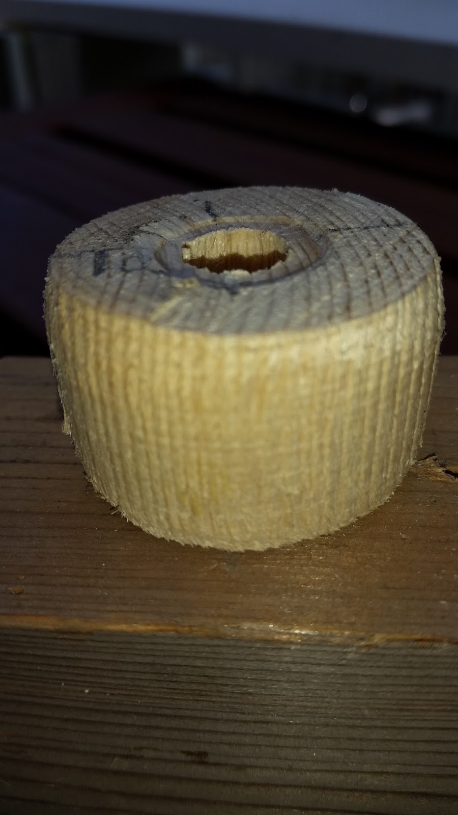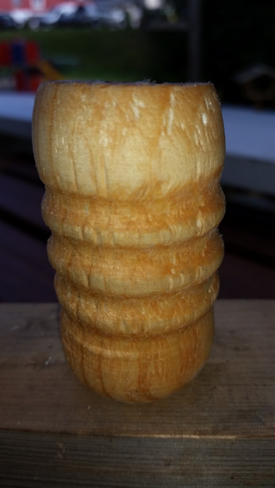 Buying a lathe is not cheap, so instead of spending a small pile on cash on a hobby I’ve never really tried before I mocked up a prototype lathe with an old drill and some other odds and ends. Rasps works well when working with soft wood like pine, and after a bit of hit and miss I did manage to turn out a couple of test pieces.