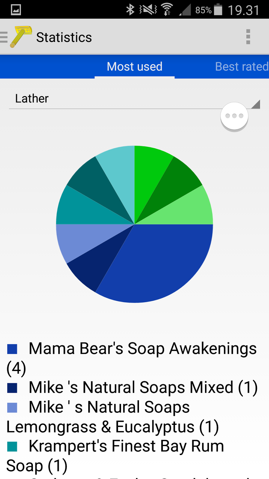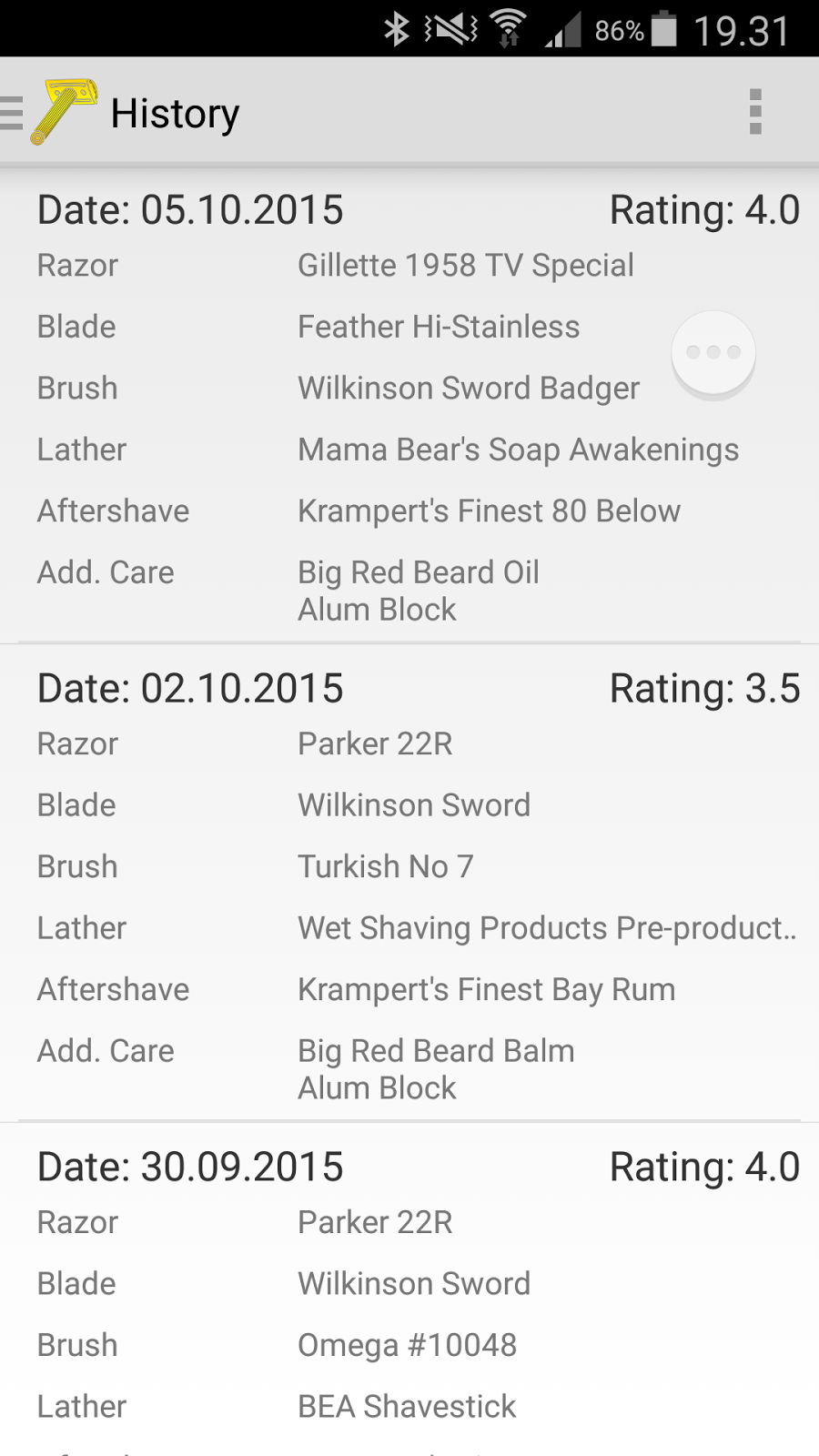 Shaving Buddy, available for Android, lets me keep track of my shaving hardware and software, track their use, enter my Shave of the Day, and – allegedly – share it on imgur.