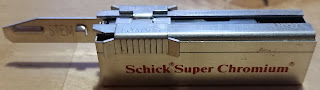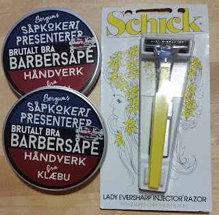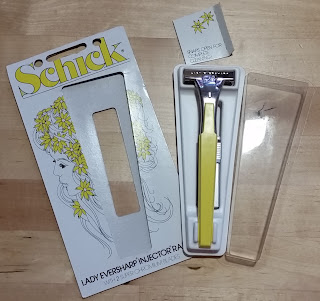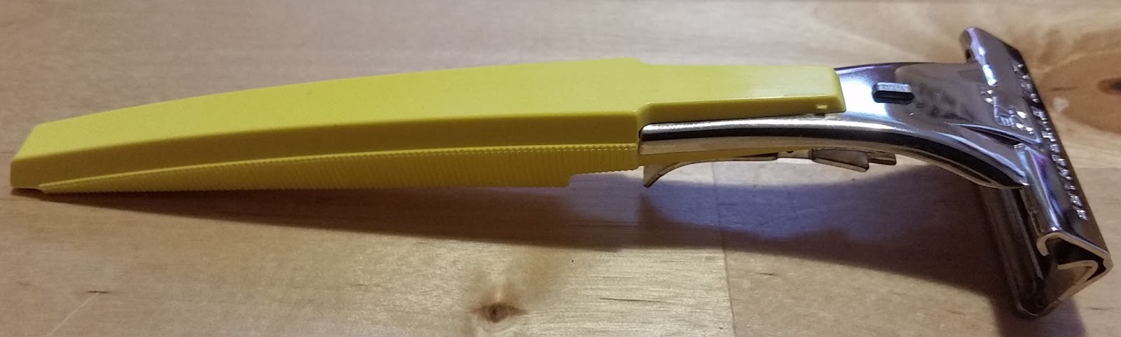 Also a NOS Schick “Lady Eversharp” Injector razor, almost direct from the back room of a Greek store. Not just for the ladies, it’s my first injector. Came with two NOS blades, but I might keep those and just use new blades with it.