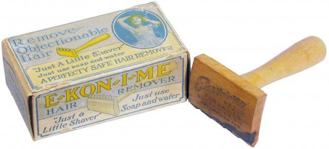 Enter the Welch’s Saratoga Disposable Razor and/or E-KON-I-ME (economy?) razors, identical in all but name as far as I can tell, and both also used the trademark “Just A Little Shaver”. A perfectly safe hair remover that would aid you in removing objectionable hair.