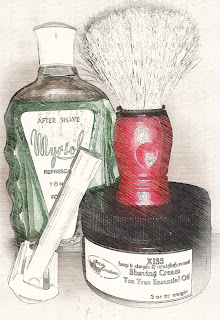 Post-shave: Cool water rinse, alum, Myrsol Agua Balsamico