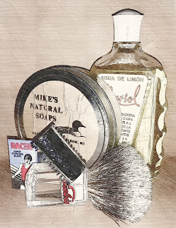 Post-shave: Cool water rinse, alum, Myrsol Agua De Limón