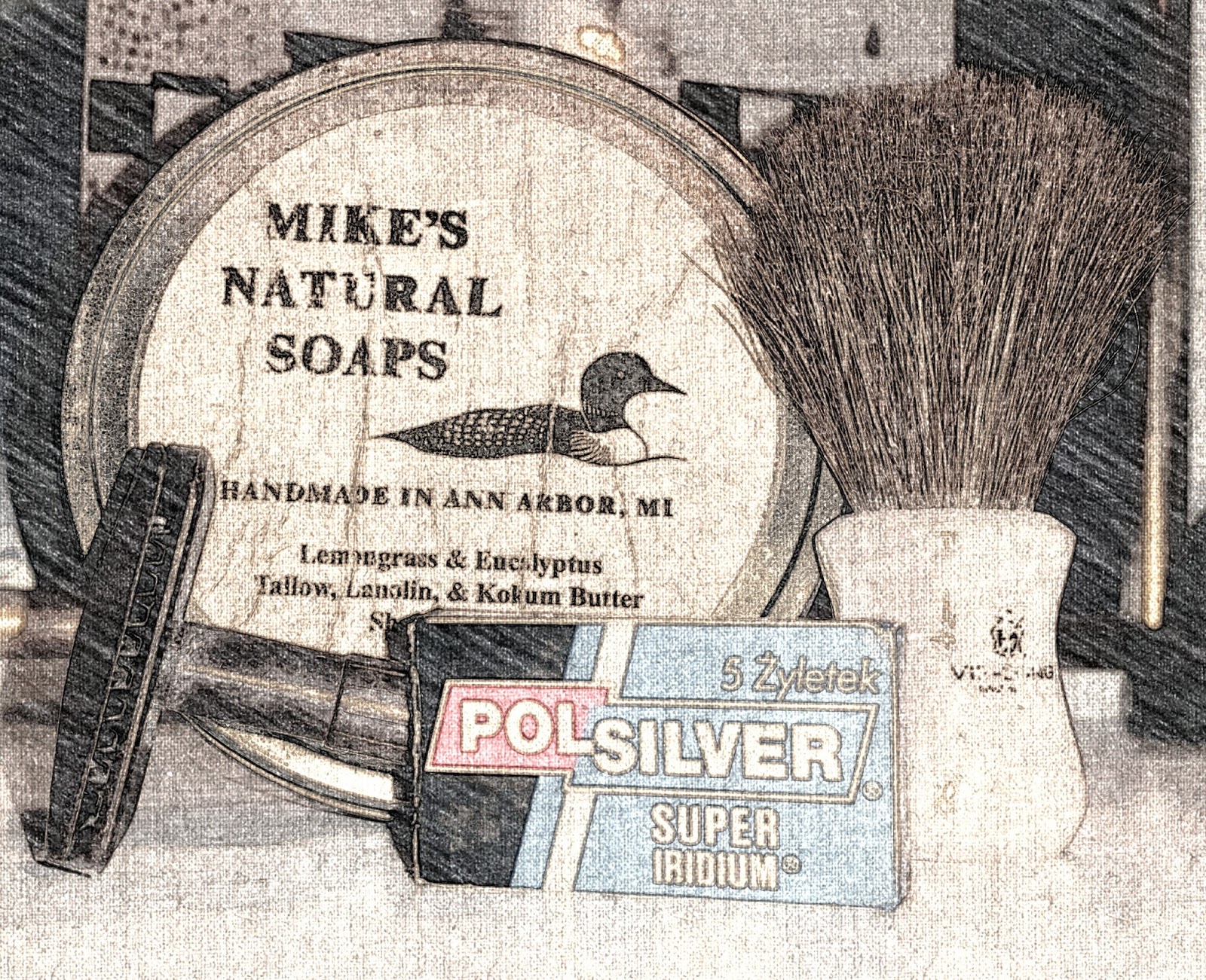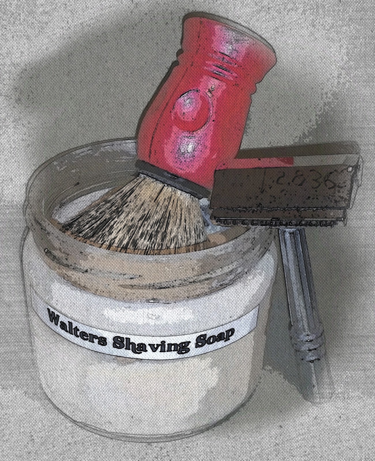 Post-shave: Cool water rinse, alum, Krampert’s Finest Bay Rum Aftershave