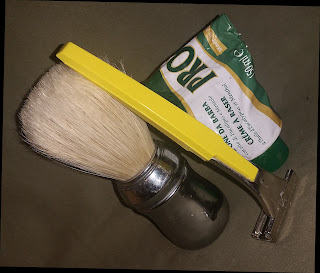 Post-shave: Cool water rinse, alum, and Krampert’s Finest Bay Rum Aftershave