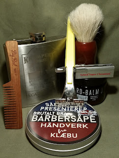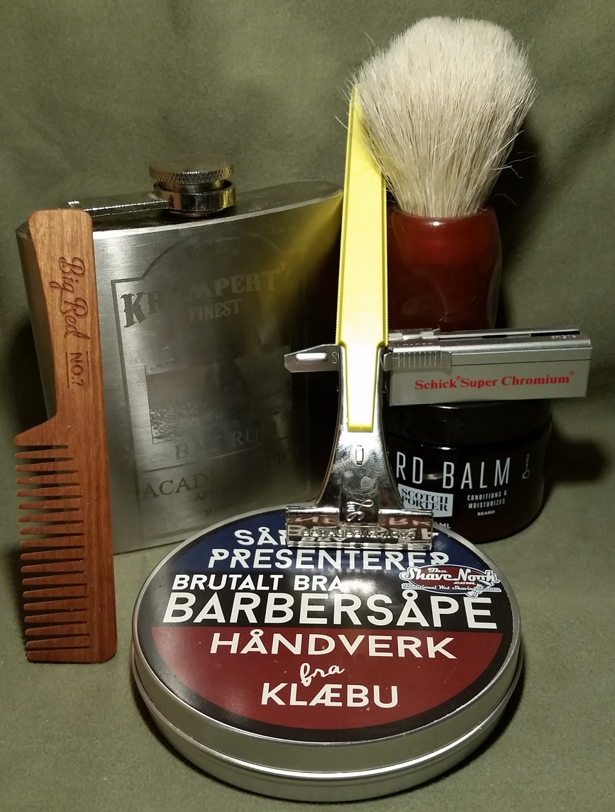 Post-shave: Cool water rinse, alum, and Krampert’s Finest Bay Rum Aftershave