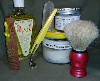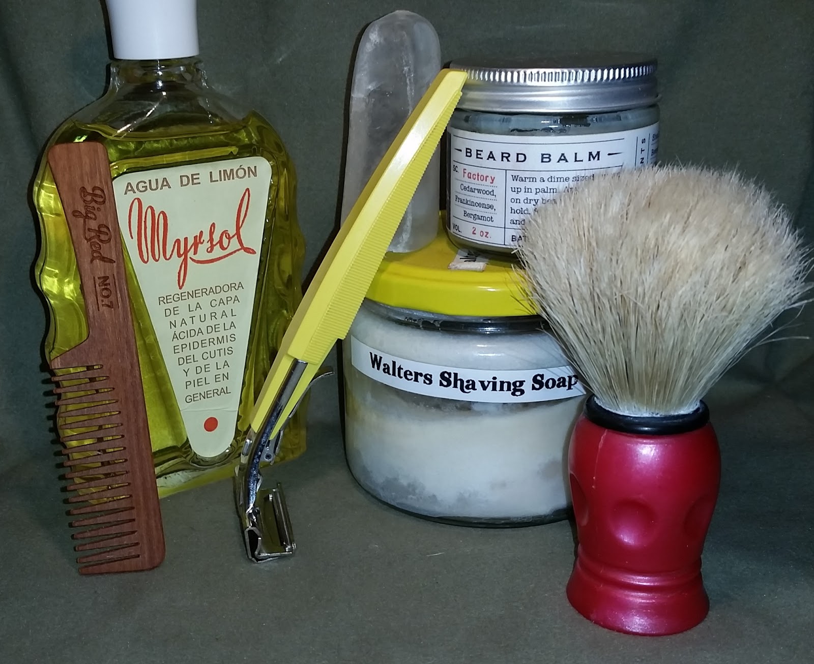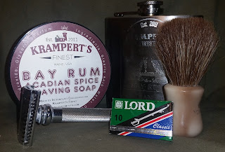 Post-shave: Cool water rinse, alum, and Krampert’s Finest Bay Rum Aftershave