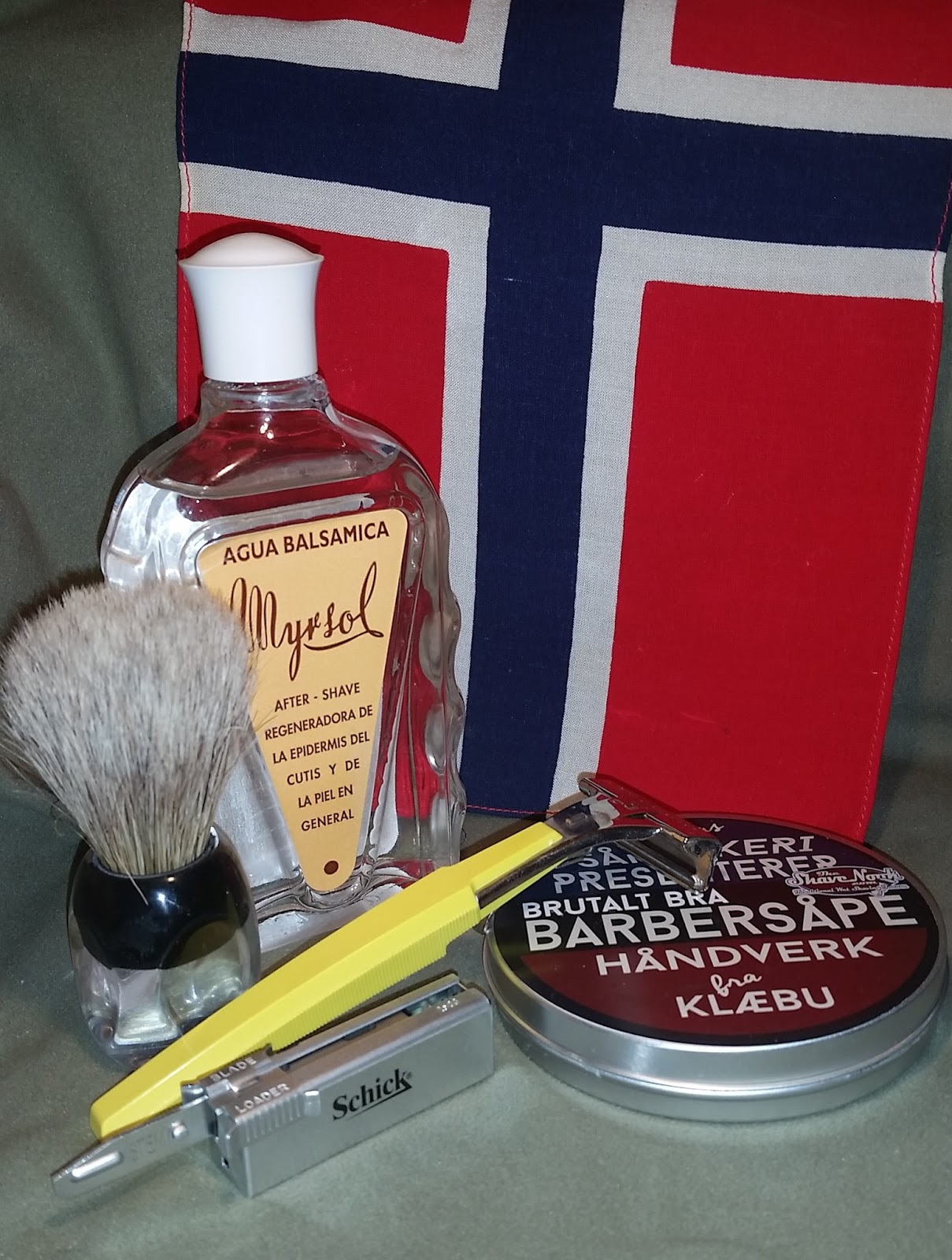 Post-shave: Cool water rinse, alum, and Myrsol Agua Balsamico