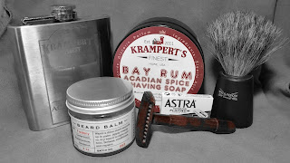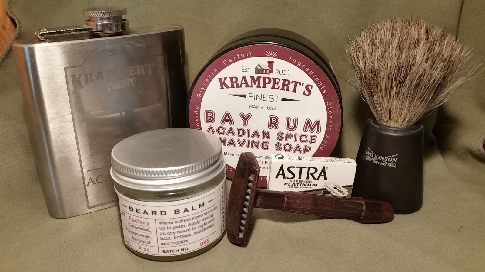 Post-shave: Cool water rinse, alum, and Krampert’s Finest Bay Rum Aftershave