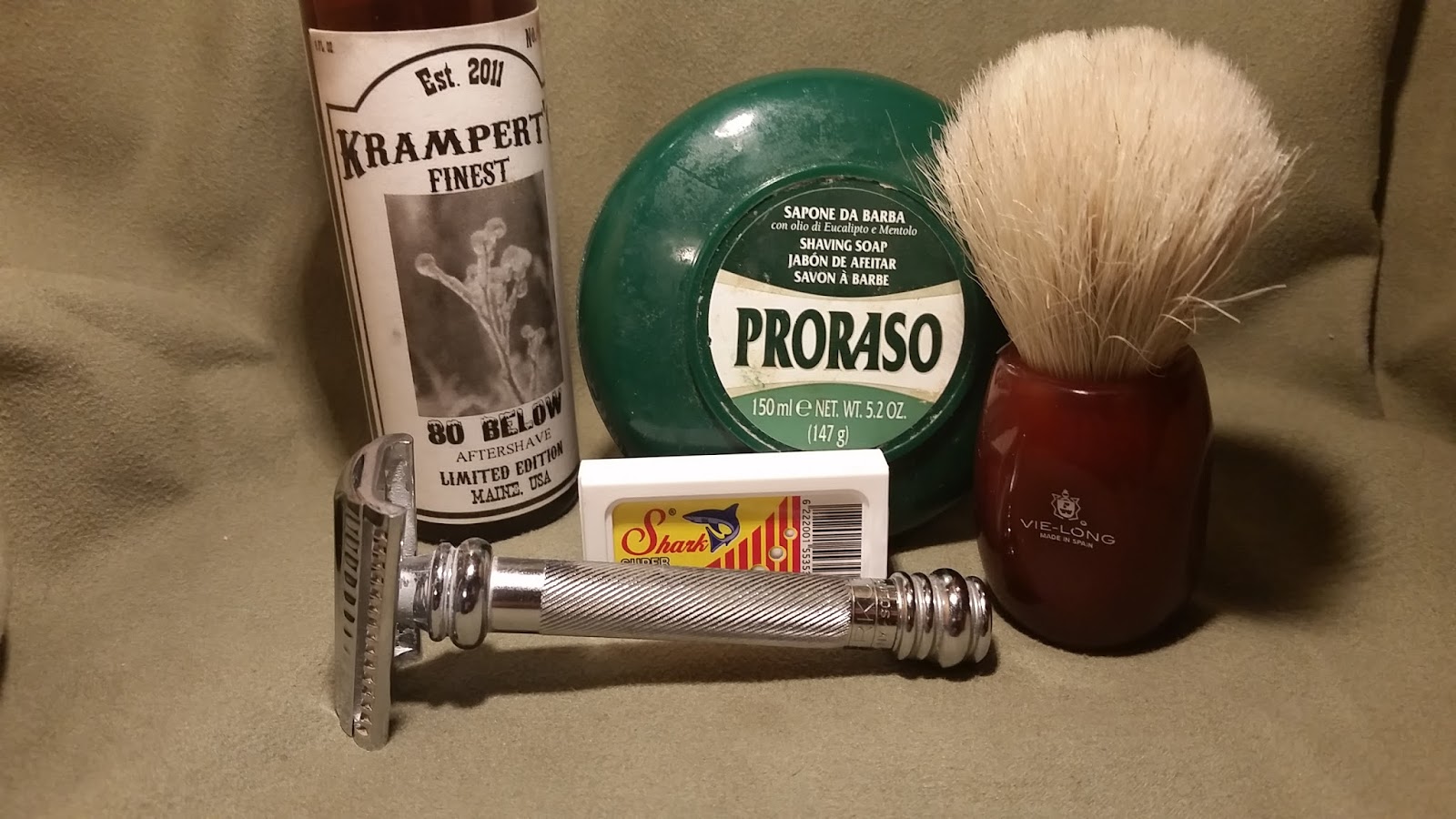 Post-shave: Cool water rinse, alum, and Krampert’s Finest 80 Below