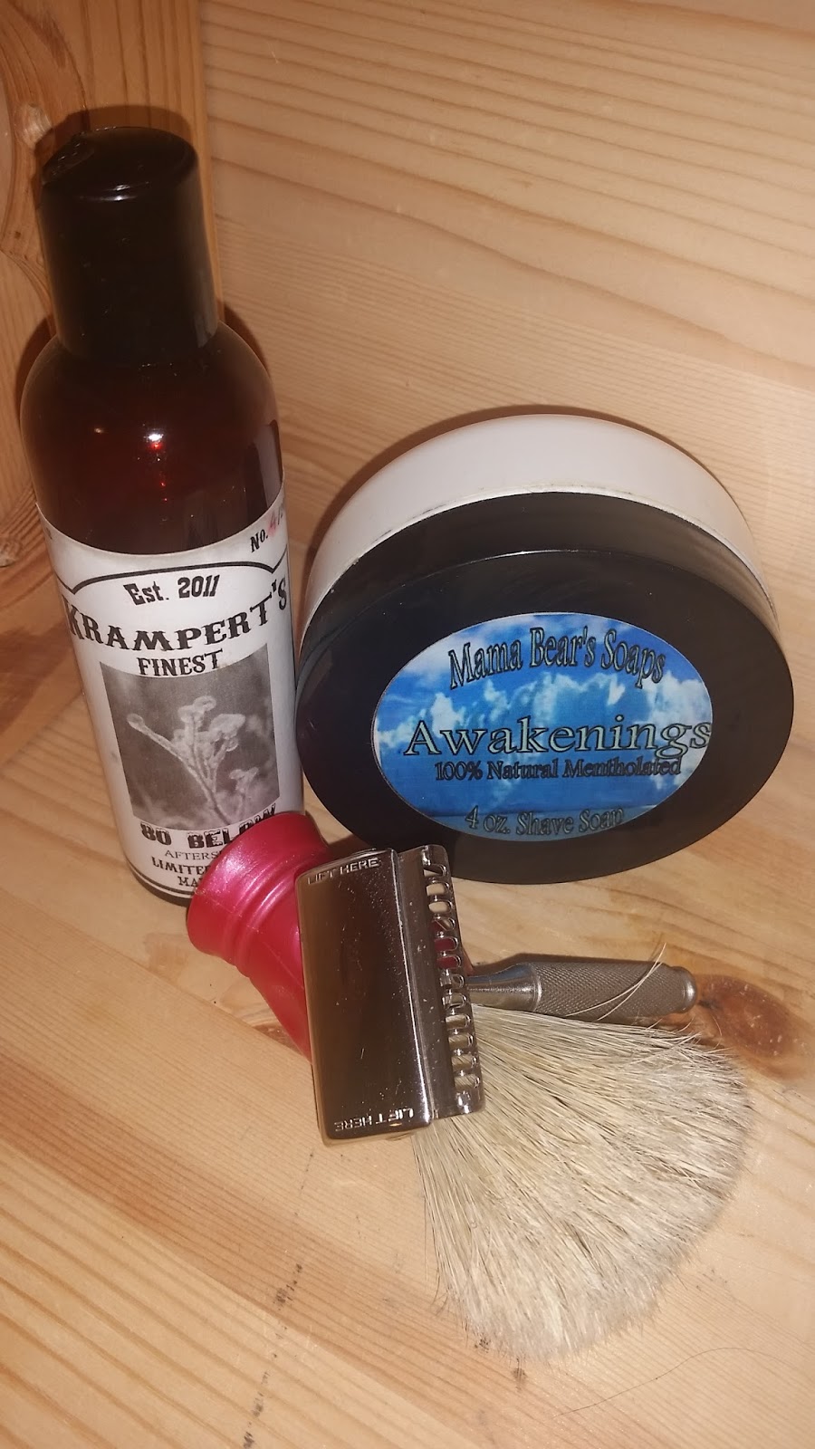 Post-shave: Cool water rinse, alum, and Krampert’s Finest Bay Rum