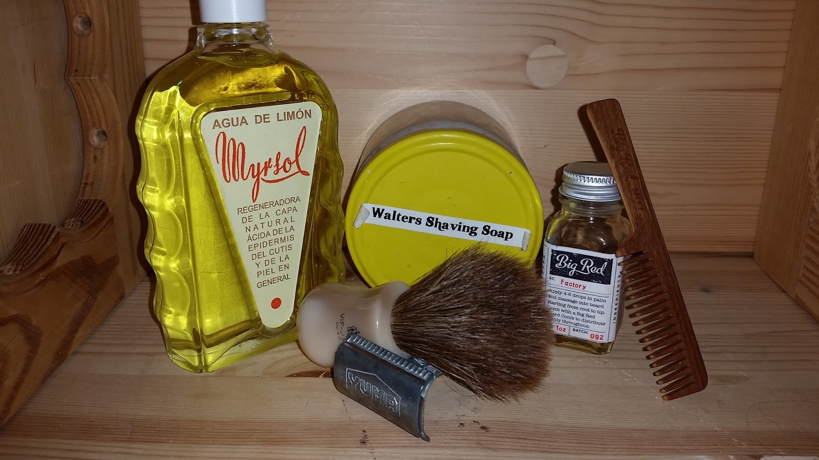 Post-shave: Cool water rinse, alum, and Myrsol Formula K