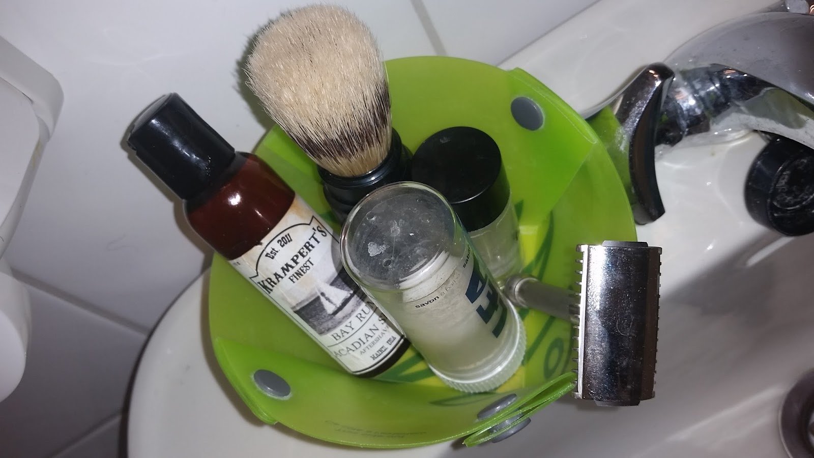 Post-shave: Cool water rinse, alum, and Krampert’s Finest 80 Below