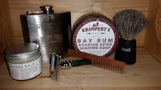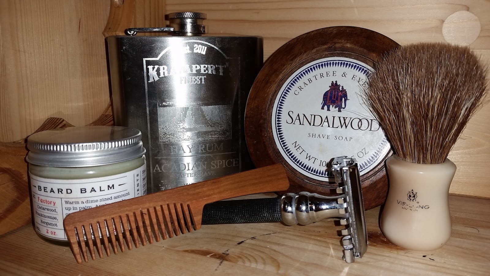 Post-shave: Cool water rinse, alum, and Krampert’s Finest Bay Rum Aftershave