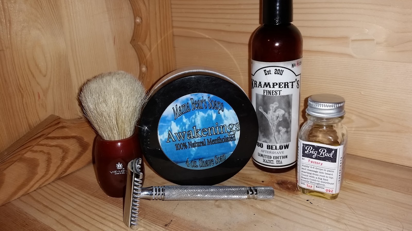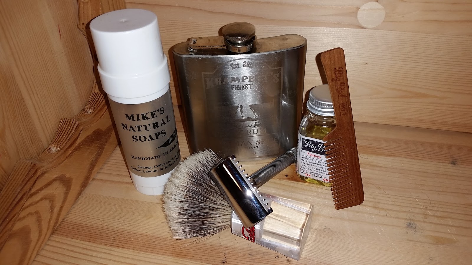 Post-shave: Cool water rinse, alum, and Krampert’s Finest 80° Below Aftershave