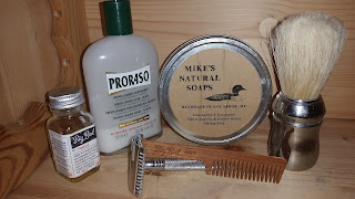 Post-shave: Cool water rinse, alum, and Thayers Original Witch Hazel with aloe vera