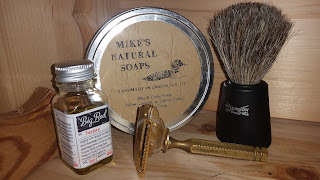 Post-shave: Cool water rinse, alum, and BodyShop Maca Root Face Protector