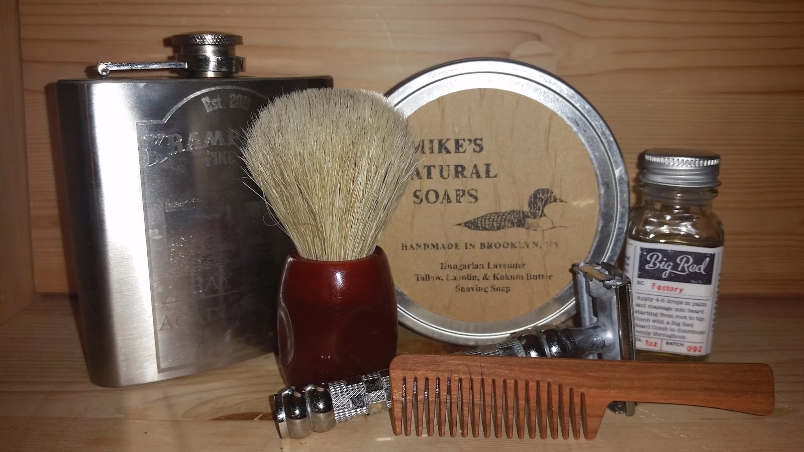 Post-shave: Cool water rinse, alum, and Krampert’s Finest Bay Rum