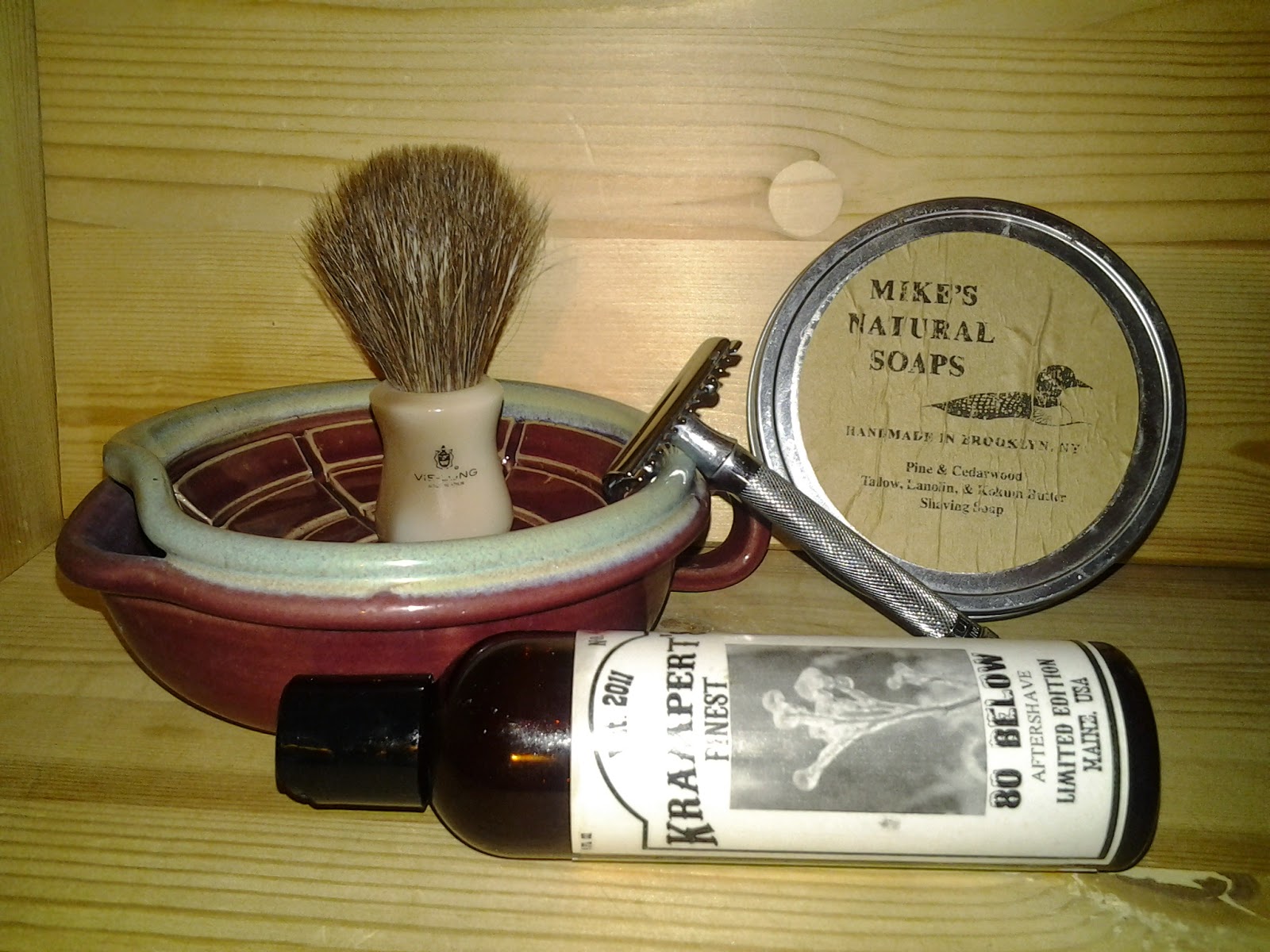 Post-shave: Cool water rinse, alum, and BodyShop Maca Root Face Protector