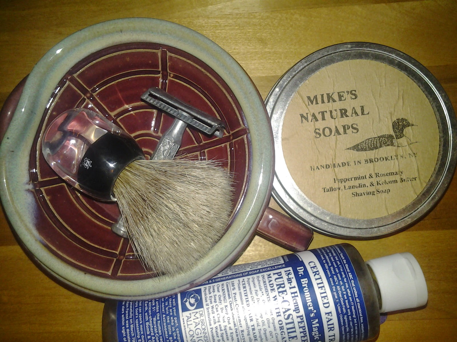 Pre-shave: Dr Bronner’s Liquid Peppermint Soap
