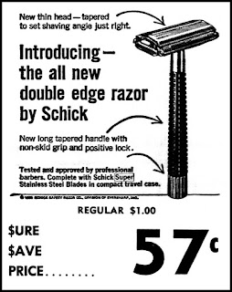 An advertisement in The Jackson Tennessee Sun newspaper from 11th February 1968. Before I found this I wasn’t even aware that Schick had manufactured double edged razors.