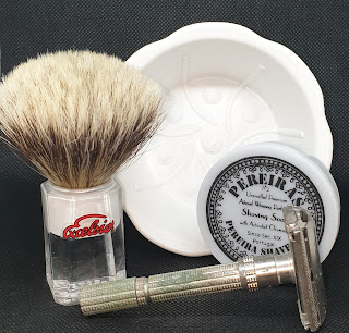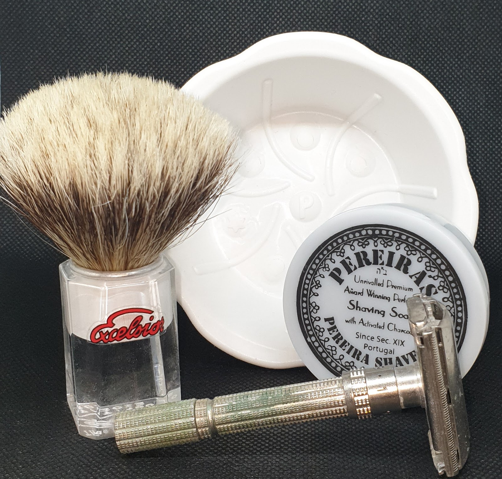 Looking at this patent, it suddenly occurred to me that artisan and small scale manufacturers of shaving soap today often use plastic containers for their soaps of a standardised size… either standardised across their own range, or even across several makers (I assume this is due to sourcing their containers from the same place). This means that they could design a screw on shaving mug to fit their hard soaps… allowing modern shavers to enjoy the traditional way of using a shaving mug without taking up too much space in their den. Another option would be to sell a version of this with multiple bottom parts, so the enterprising shaver could fill the soap cups with the soap of his choice. I’m just tossing the idea out there the patent is long expired, so it’s a free for all.