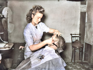 There is a lot of old black and white photos of people shaving out there, photos that give us some idea of what shaving was like back then but which could tell us so much more more if they were in colour.