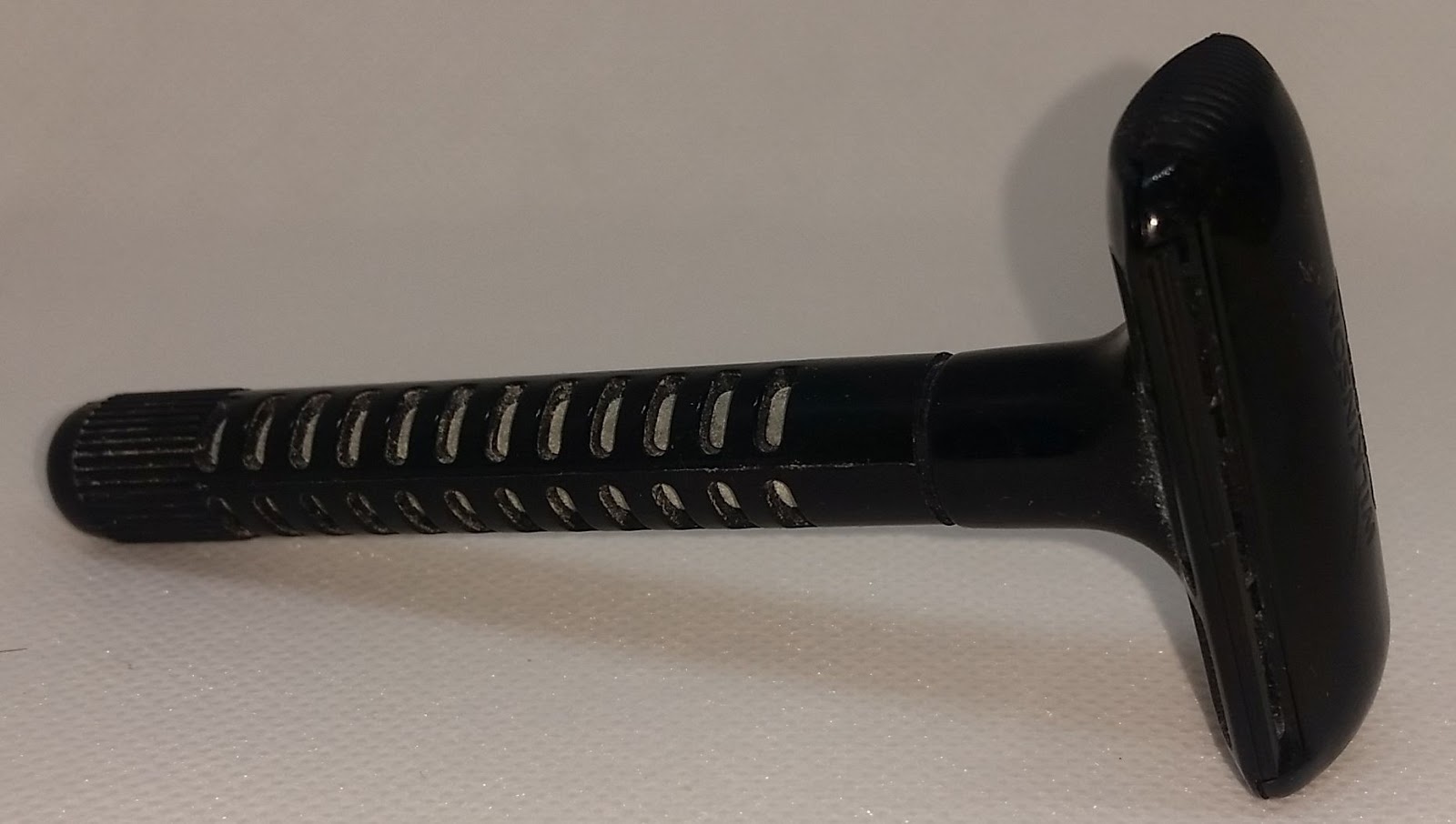 An Open Comb, Twists-To-Open razor, and one of the very few of this style I’m familiar with. The balance is very good which makes for an easily manoeuvrable razor. The open comb and head geometry makes it slightly more aggressive than the closed comb Cadet TTO-13, but not by much. It’s an efficient axe for mowing down stubble, but at the same time great for touch-ups and polishing. Paint on the handle is starting to wear off, which don’t affect how well it shaves.