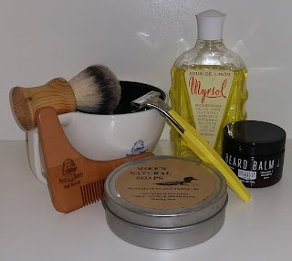 Additional Care: Alum Block, BullDog Original Beard Balm, Pereira Shavery Boomerang Beard Comb