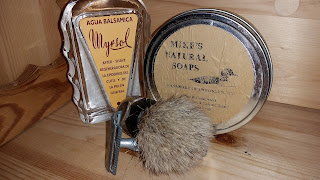Post-shave: Cool water rinse, alum, and BodyShop Maca Root Energetic Face Protection